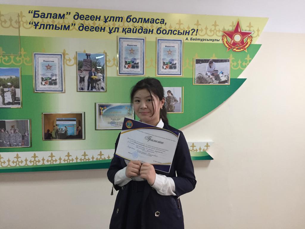 Нұр-Сұлтан қаласында, "Қалалық Фариза" оқулары сайысында қатысушы 8 «Ә» сынып оқушылары және Камитова Диляра грамотамен марапатталды. Жетекшісі: қазақ тілі пәнінің мұғалімі Сейдалина Мейрамгул Туяковна.